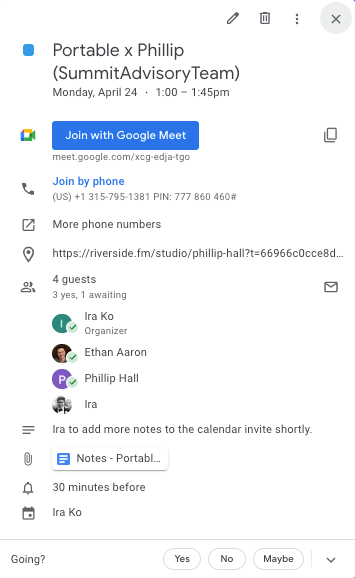 - Create a personalized Riverside link (Studio) and add it to the calendar invite. I like to do these immediately when I schedule the event so that guests aren't scrambling day-of-interview.