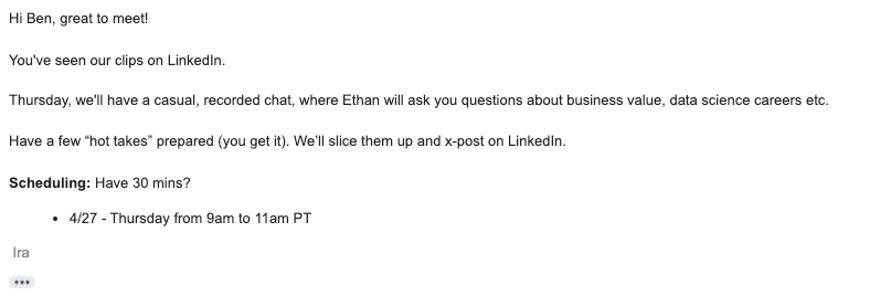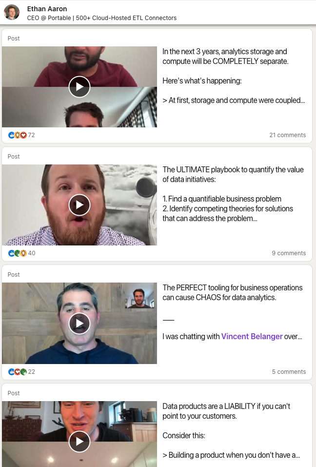 This is the playbook that I used with Ethan Aaron at Portable to generate hundreds of hours of view time and dozens of LinkedIn DMs.
