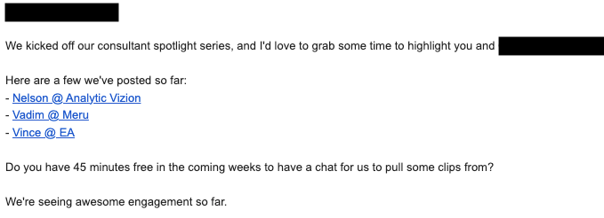 3. Be a human. Ask them they want to be spotlighted on an interview.